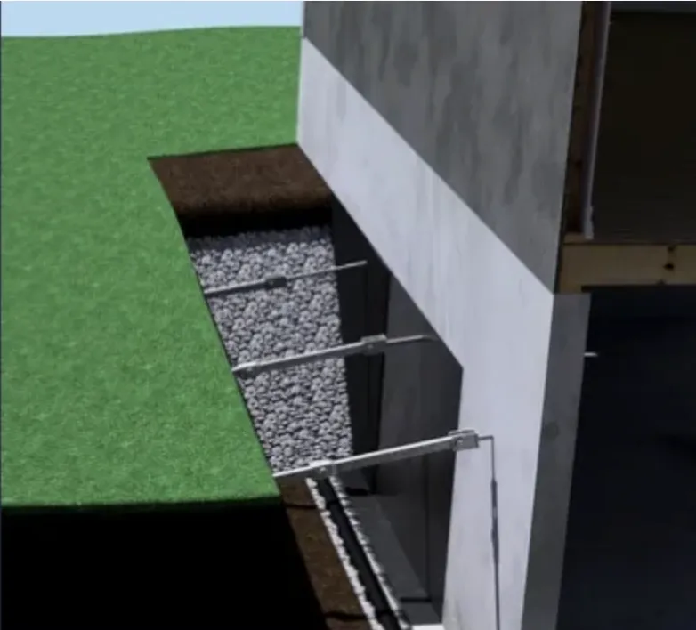 Helical tiebacks are steel anchors with spiral-shaped blades that are drilled horizontally into the soil behind a wall. Once in place, they act like giant screws—pulling back against the wall and resisting the outward push of the soil. The result is immediate stabilization and long-term protection.